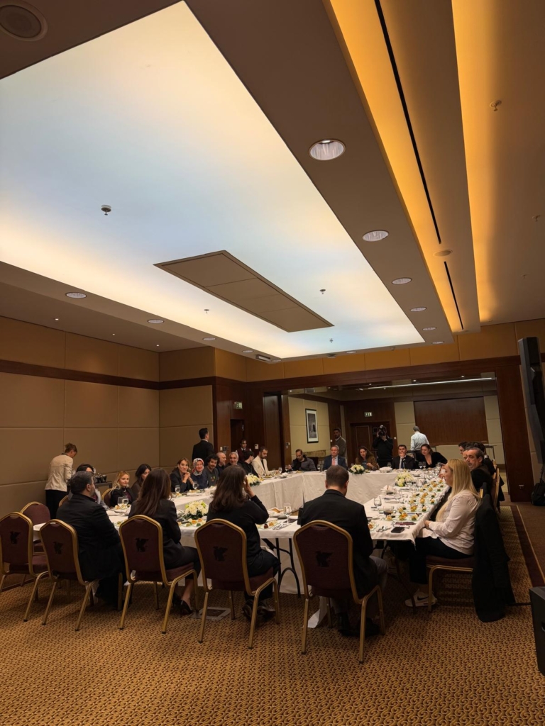 JW Marriott Ankara’nın kahverengi tonlarının hakim olduğu yemek salonuna girdiğimde dikdörtgen düzeninde kurulmuş genişçe bir masa ve beyaz örtülerin üzerinde parlayan servis takımları dikkatimi çekiyor.