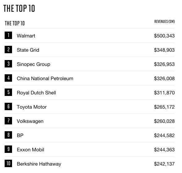 İşte Fortune Global 500 listesinin şampiyonları;