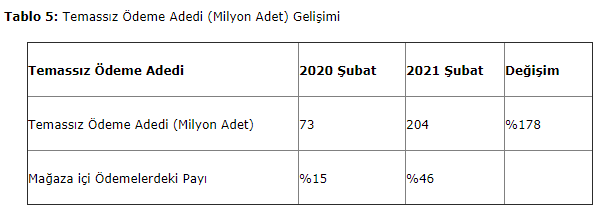 ŞUBAT AYINDA MAĞAZA İÇİNDEKİ HER 2 KARTLI ÖDEMENİN 1’İ TEMASSIZ YAPILDI