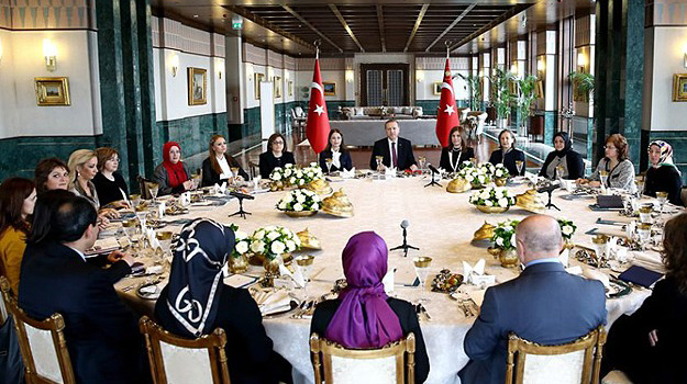 Cumhurbaşkanı Recep Tayyip Erdoğan, Cumhurbaşkanlığı Sofrası’nda siyasetçi, gazeteci, kadına yönelik faaliyetlerde bulunan sivil toplum kuruluşlarının temsilcileri ve bazı kadın akademisyenlerle bir araya geldi.