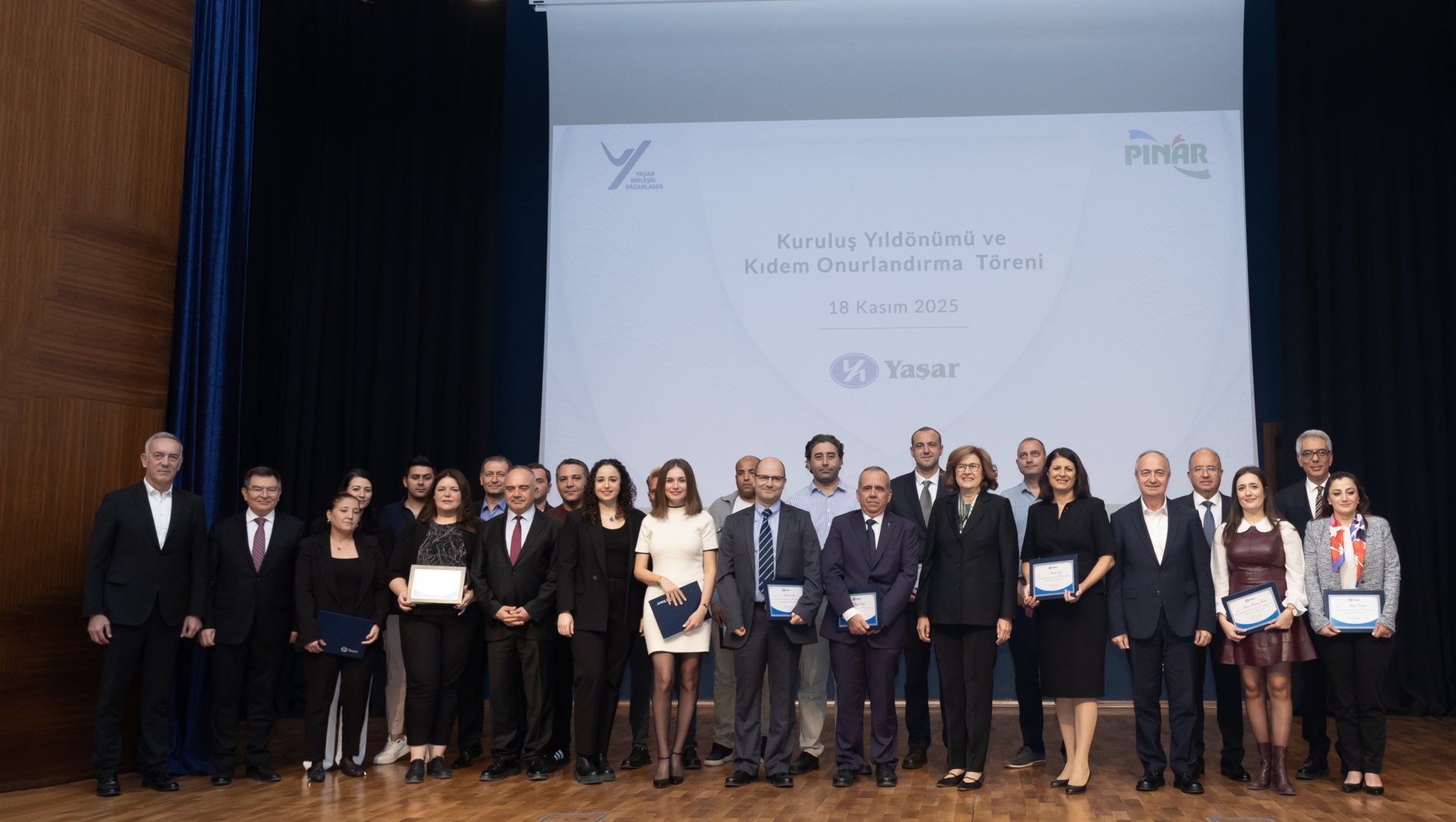 Kuruluş yıldönümleri vesilesiyle Yaşar Üniversitesi’nde düzenlenen törene Yaşar Holding Yönetim Kurulu Başkan Vekili İdil Yiğitbaşı, Yaşar Holding İcra Başkanı Mehmet Aktaş, Yaşar Holding Finans Başkan Yardımcısı Tolga Şenefe, Yaşar Holding Başkan Yardımcısı ve Pınar Süt Genel Müdür V. Suat Özyiğit, Yaşar Birleşik Pazarlama Genel Müdürü Hüseyin Karamehmetoğlu, Yaşar Üniversitesi Mütevelli Heyet Başkanı Ahmet Yiğitbaşı, Yaşar Üniversitesi Rektörü Levent Kandiller ile Yaşar Holding’e bağlı yönetici ve çalışanlar katıldı.